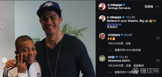 姆巴佩晒与C罗昔日合照:相信梦想,向你致敬👑🐐