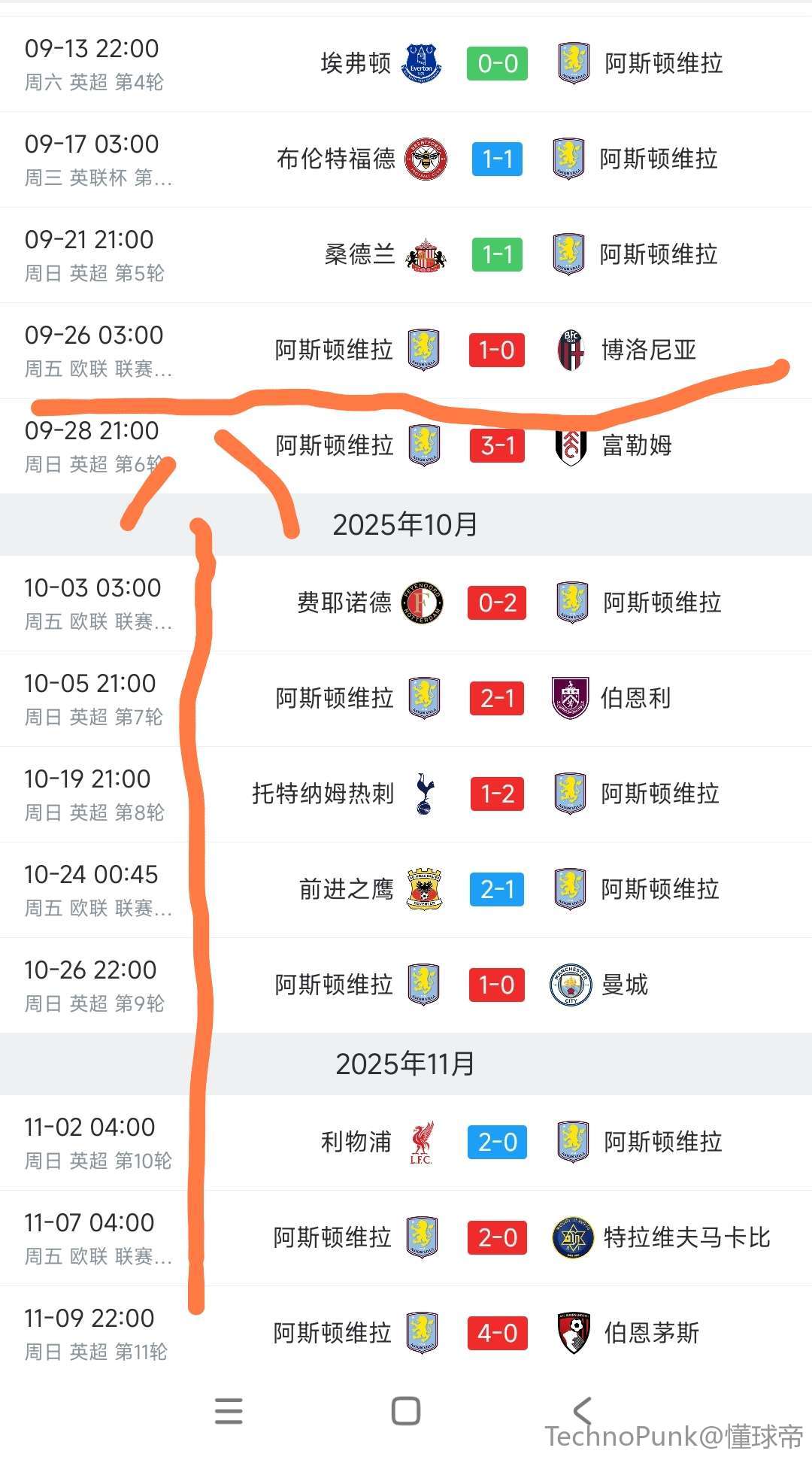 维拉是本季英超唯一周中欧战后周末联赛全胜球队