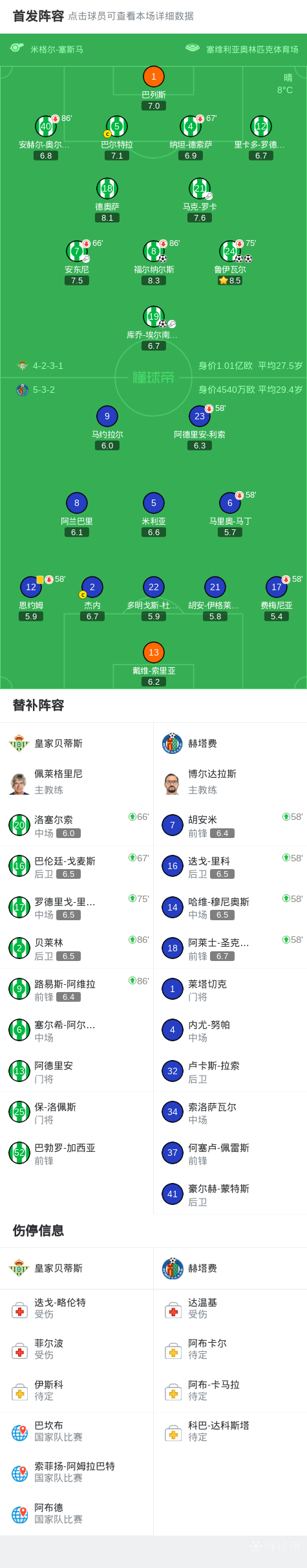 皇家贝蒂斯 vs 赫塔费 比赛动态