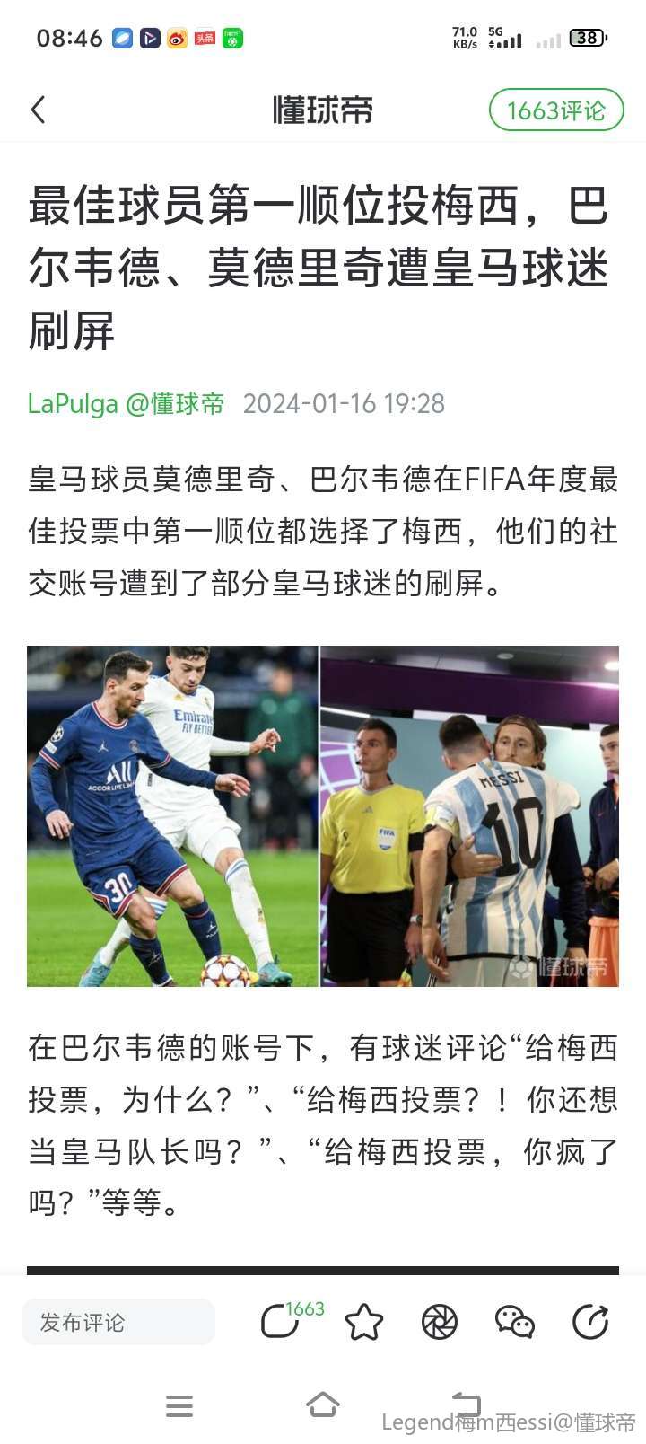 说到魔笛我依然对这件事印象深刻,顶着被自家球迷网爆的压力都要投梅西