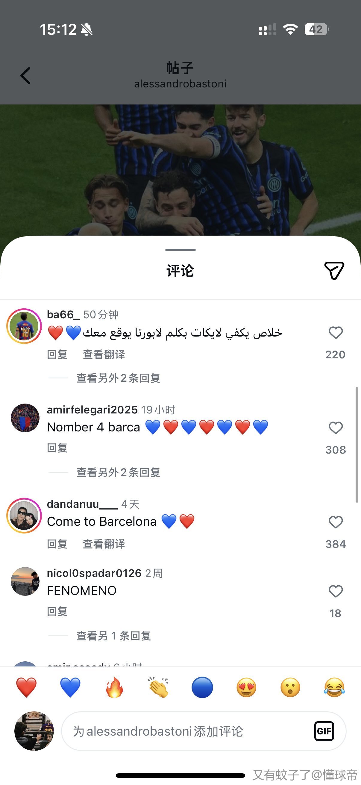 扫描下载懂球帝首页>动态> 何意味?巴斯托尼点赞球迷让自己来巴萨的评论