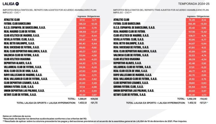 扫描下载懂球帝首页>动态> 西甲24-25赛季转播权收入:皇马1.58亿领跑,巴萨1.56亿次席