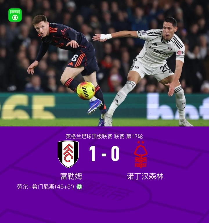 扫描下载懂球帝首页>动态> 富勒姆1-0诺丁汉森林,劳尔-希门尼斯点射制胜
