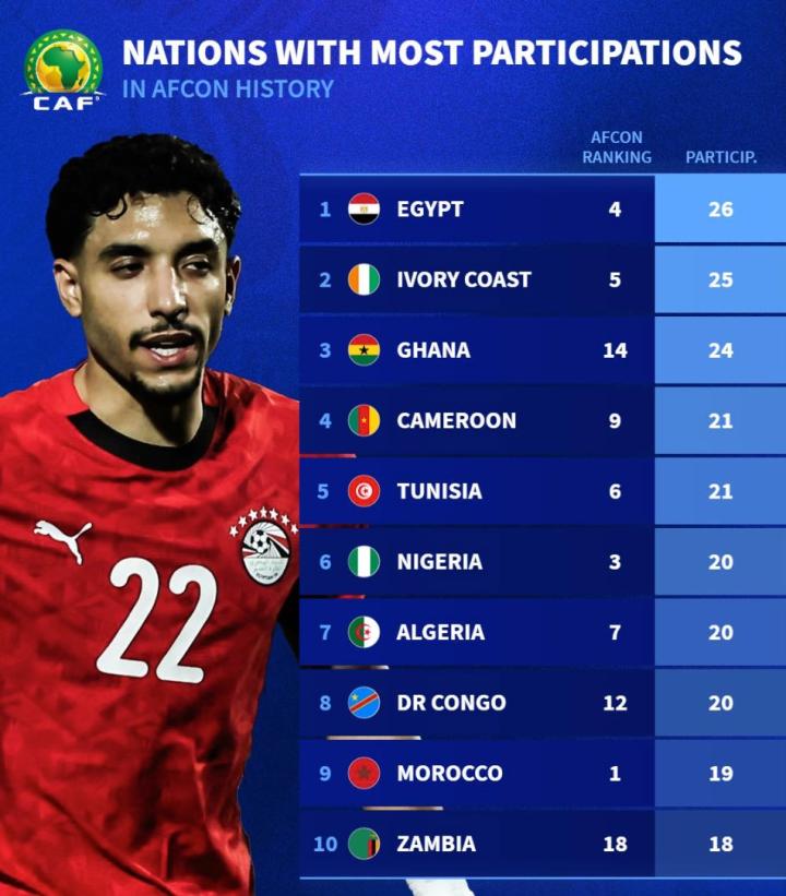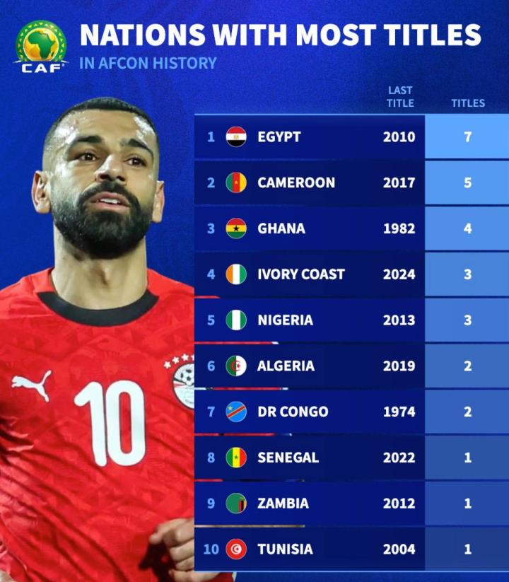 扫描下载懂球帝首页>动态> 非洲杯夺冠与参赛次数排名:埃及7次夺冠26次参赛均位列第一