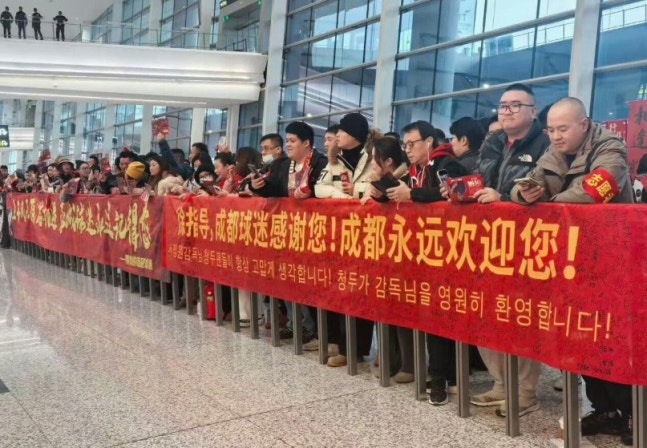 12-23 13:00功勋主帅徐正源回到成都,大批成都蓉城球迷在机场接机