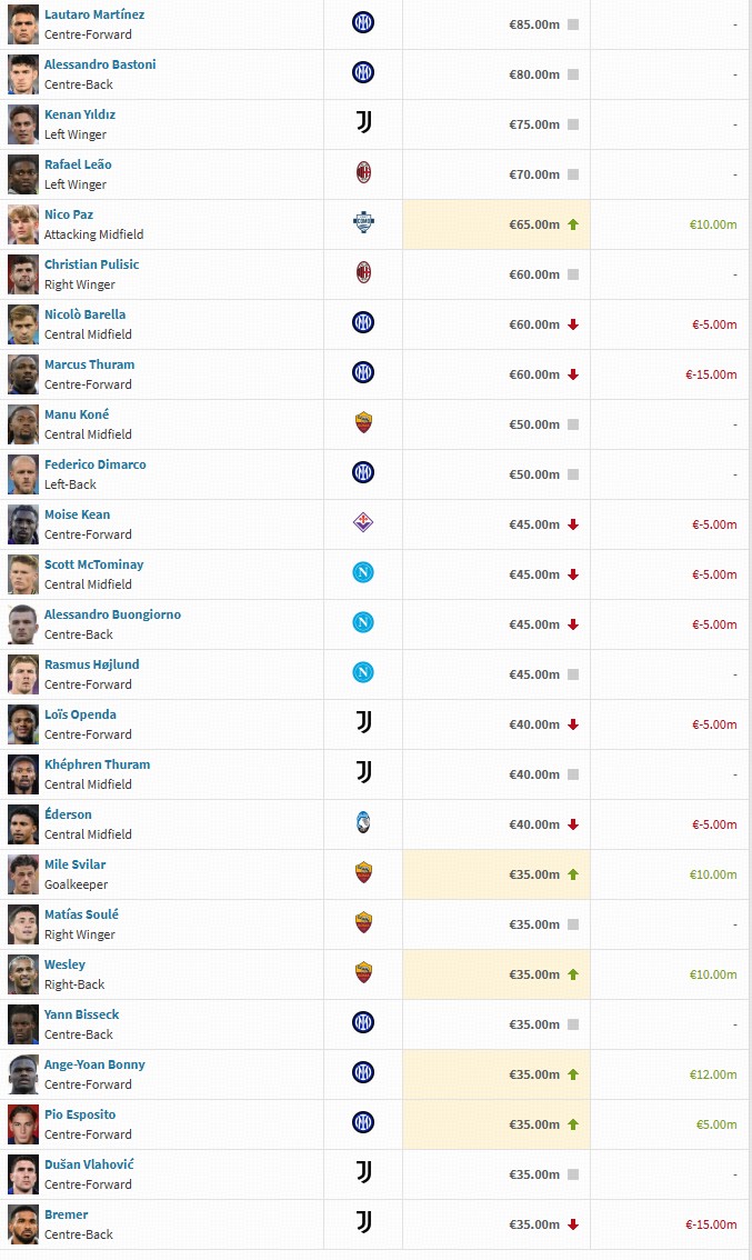扫描下载懂球帝首页>动态> 意甲身价更新:劳塔罗8500万欧居首,尼科-帕斯涨至6500万欧