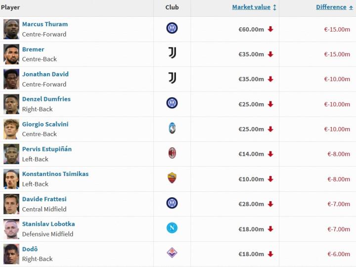 意甲身价每次都是成百的往上涨,成千的往下降,德转对意甲这么大偏见吗?