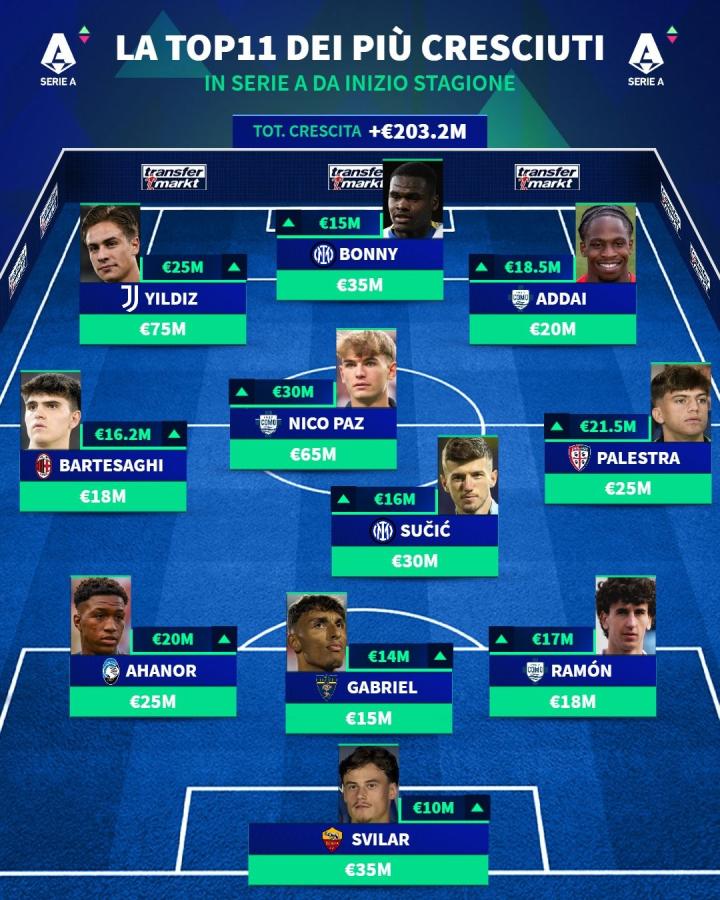 扫描下载懂球帝首页>动态> 德转意甲本赛季身价涨幅最高11人阵容:帕斯暴涨3000万欧领衔