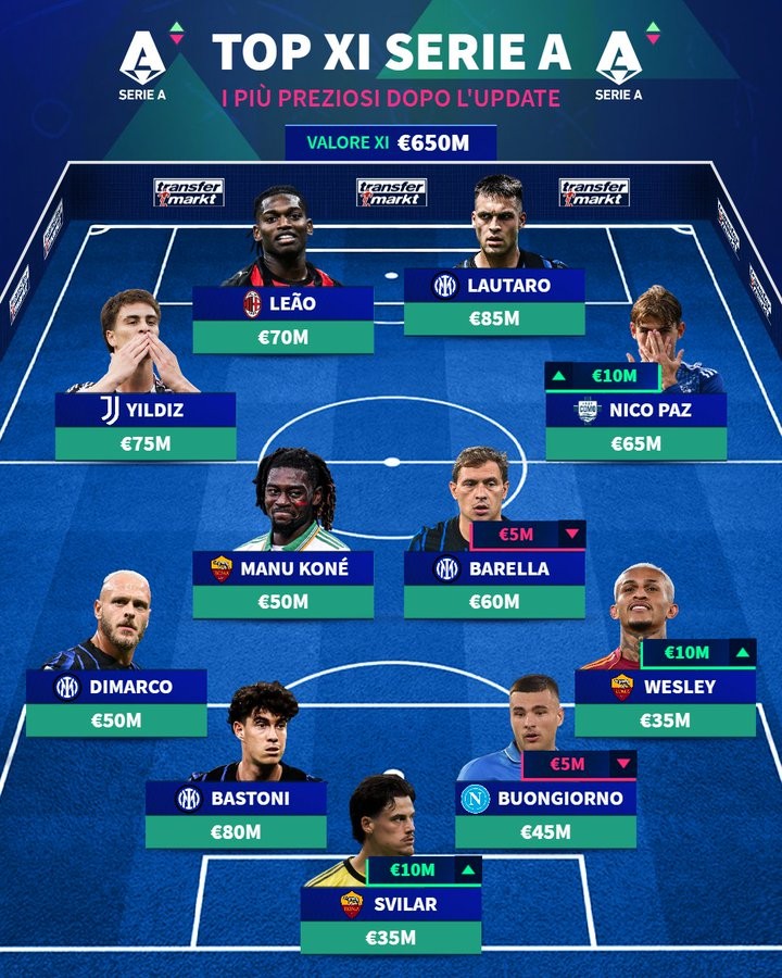 12-24 01:58意甲身价更新:劳塔罗8500万欧居首,尼科-帕斯涨至6500万欧