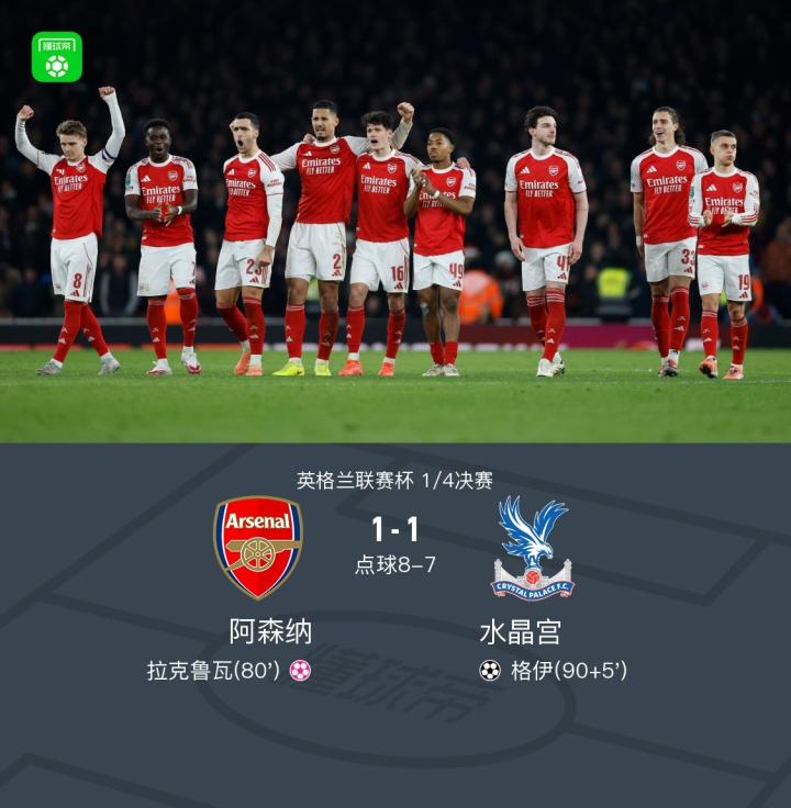 扫描下载懂球帝首页>动态> 英联杯阿森纳9-8点杀水晶宫晋级四强,拉克鲁瓦乌龙+失点