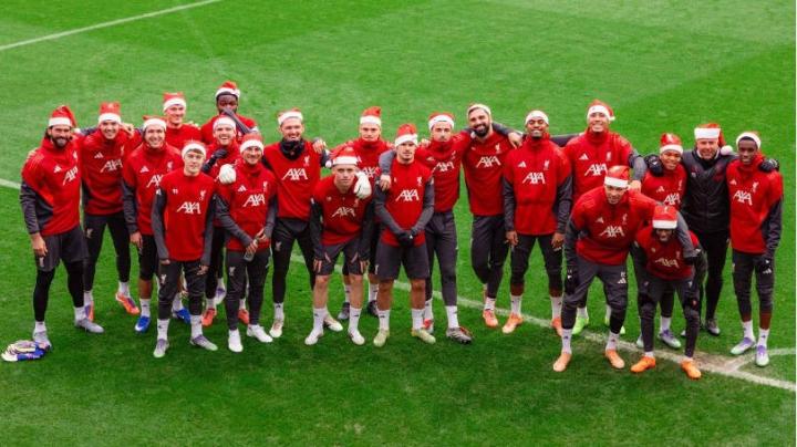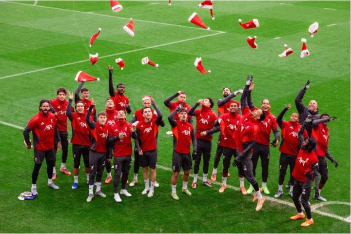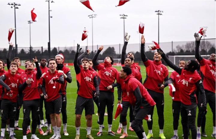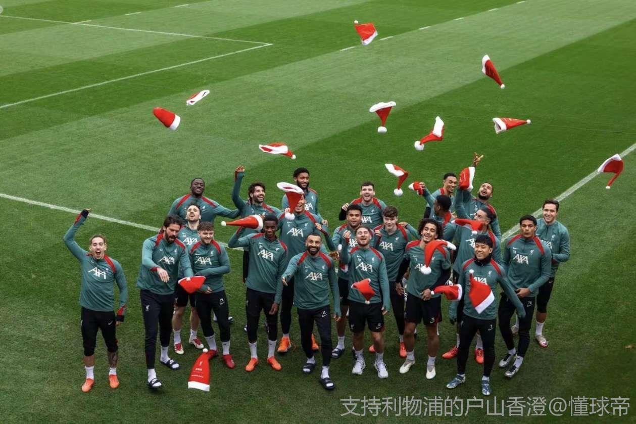 扫描下载懂球帝首页>动态> 传统环节,利物浦全队戴圣诞帽在训练场拍大合照