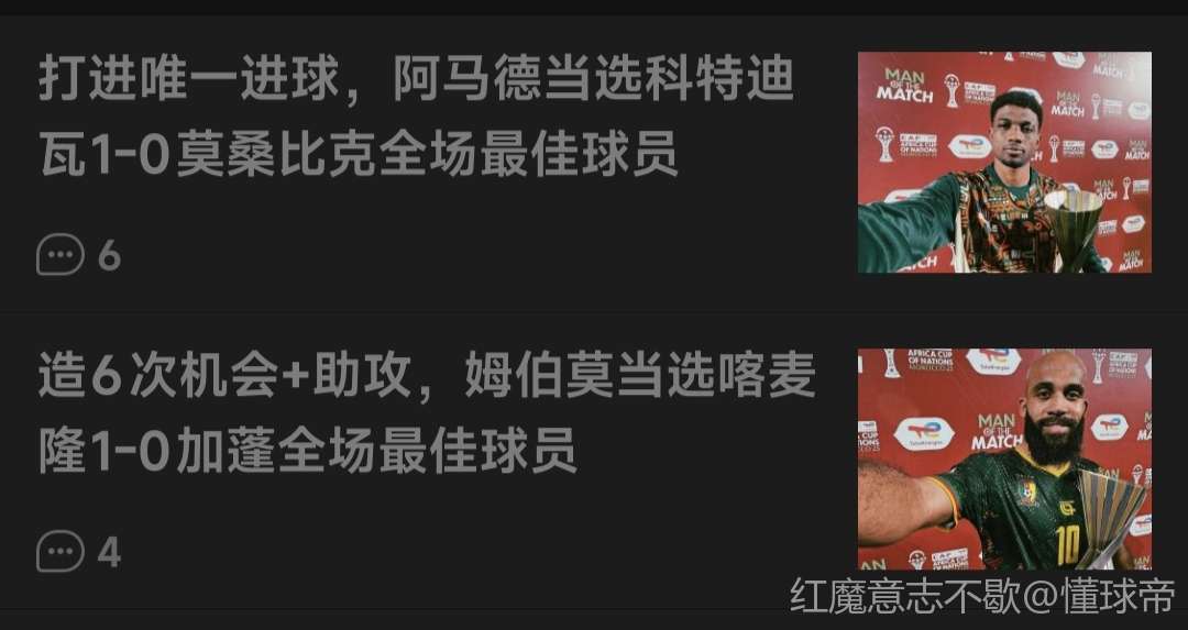 决赛科特迪瓦vs喀麦隆,曼联赢麻了