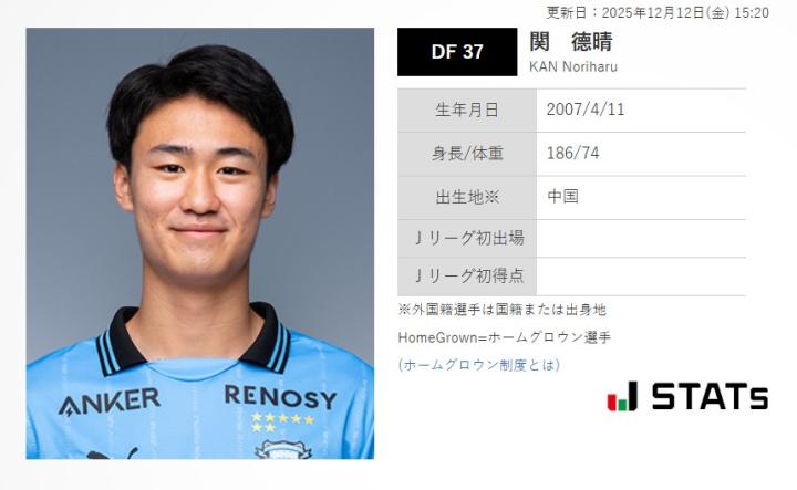 扫描下载懂球帝首页>动态> 18岁中国后卫关德晴升入川崎前锋一线队,球员出自川崎青训