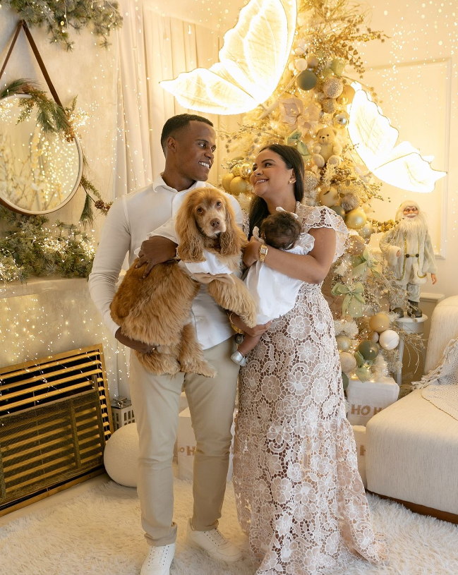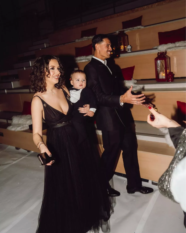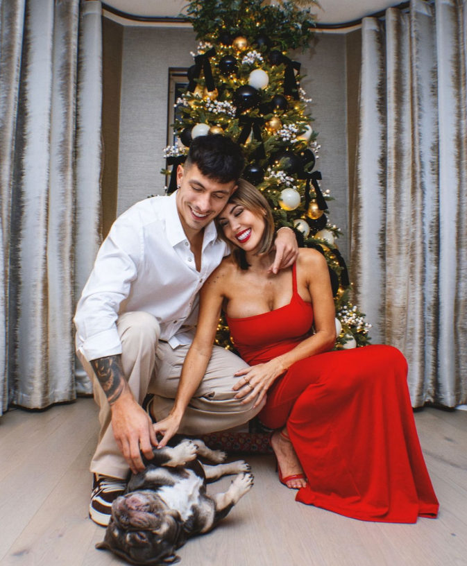2024年,他们在装饰精美的圣诞树前留下了奢华而温馨的全家福:阿里亚斯怀抱着家庭爱犬,亚历杭德拉则轻拥着孩子。