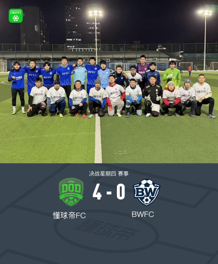大家晚上好,又是一个元气满满的周四,我懂迎来年度收官战,对手是BWFC。双方经过较量,最终懂球帝4-0大胜BWFC。