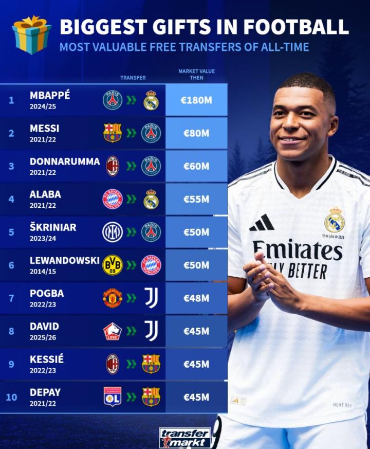 扫描下载懂球帝首页>动态> 德转历史免签球员身价榜:姆巴佩1.8亿欧第1,梅西8000万第2