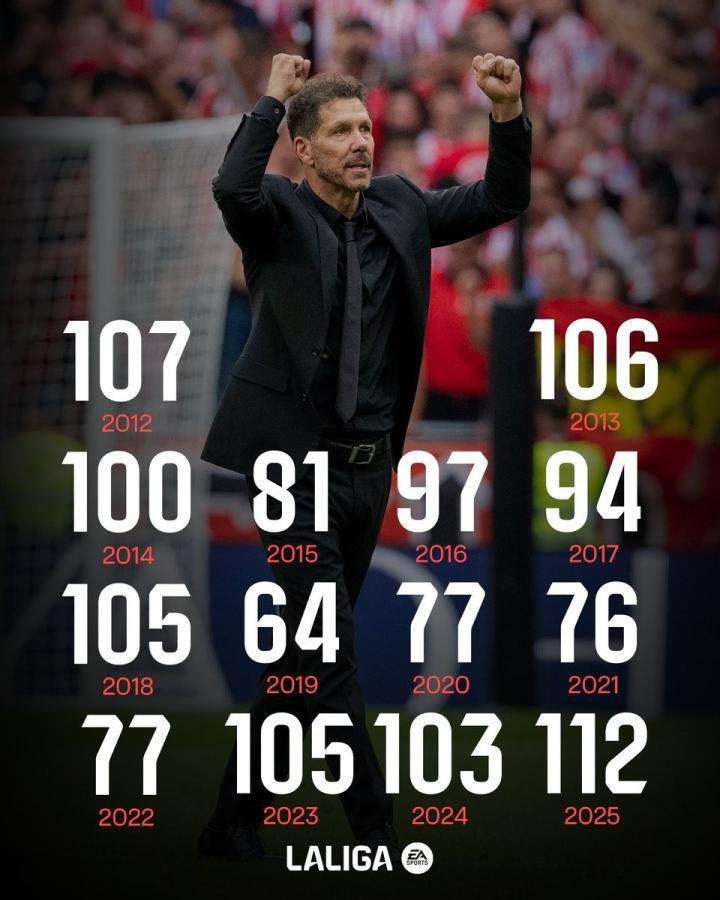 扫描下载懂球帝首页>动态> 马竞2025年进112球,创西蒙尼执教球队14年来自然年进球数纪录