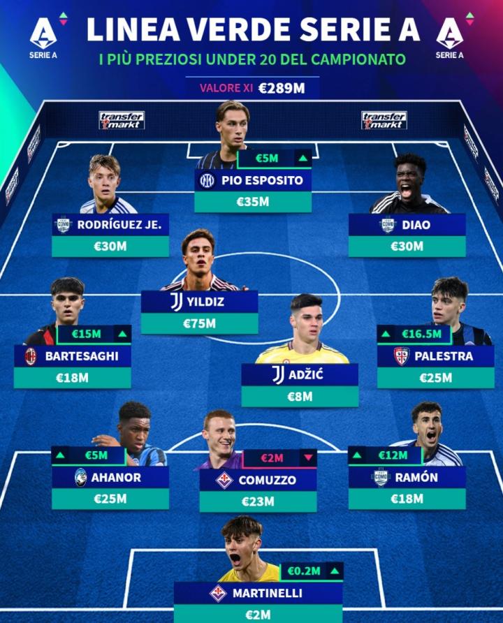 扫描下载懂球帝首页>动态> 德转列意甲U20最佳11人:伊尔迪兹领衔,皮奥、巴尔泰萨吉入选