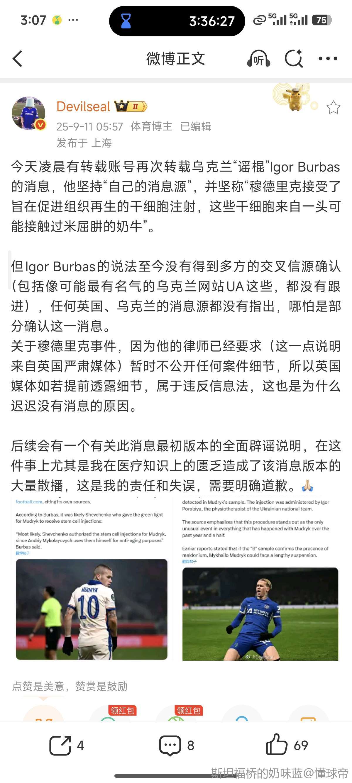 怎么评论区还有一大群人不知道穆德里克关于舍甫琴科使用牛干细胞的那个报道是fake news