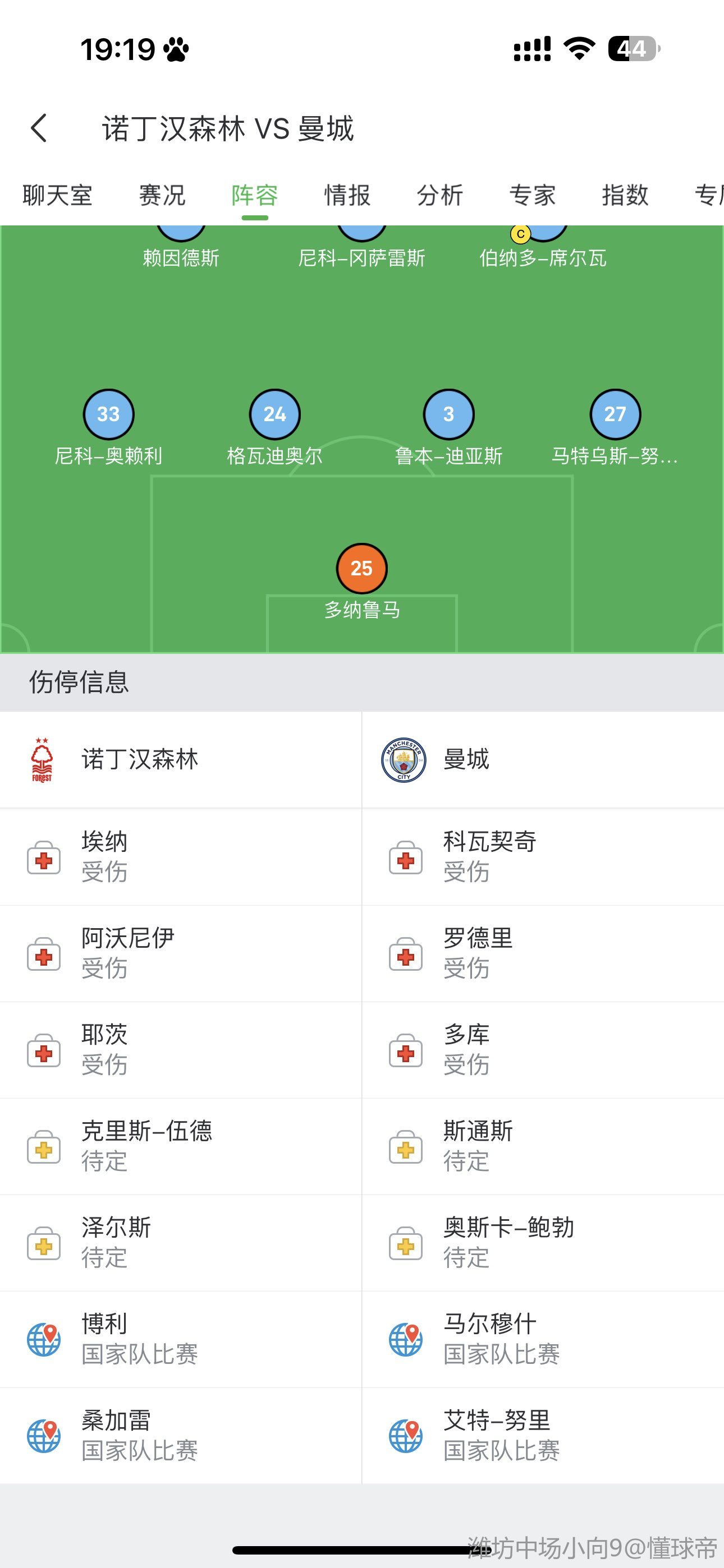 扫描下载懂球帝首页>动态> 曼城客战森林:哈兰德、福登、努内斯先发,罗德里替补