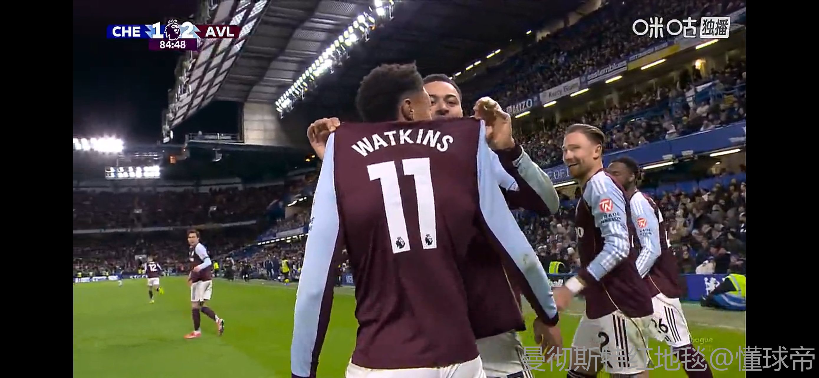 替补完成梅开二度,沃特金斯当选维拉2-1客胜切尔西全场最佳
