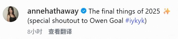 12-28 11:28安妮-海瑟薇晒年终小记:读热苏斯亲笔信、观战尼克斯圣诞大战