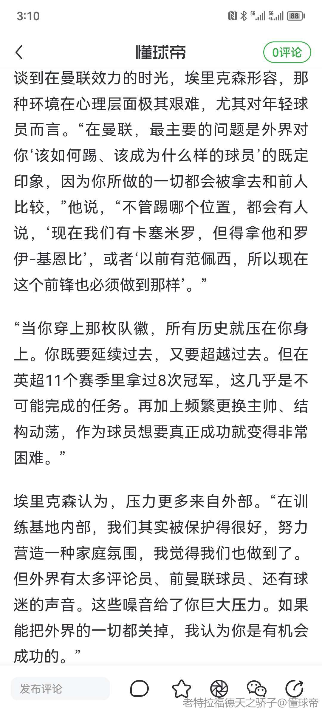 埃里克森认为,压力更多来自外部。“在训练基地内部,我们其实被保护得很好,努力营造一种家庭氛围,我觉得我们也做到了。但外界有太多评论员、前曼联球员、还有球迷的声音。这些噪音给了你巨大压力。如果能把外界的一切都关掉,我认为你是有机会成功的。”