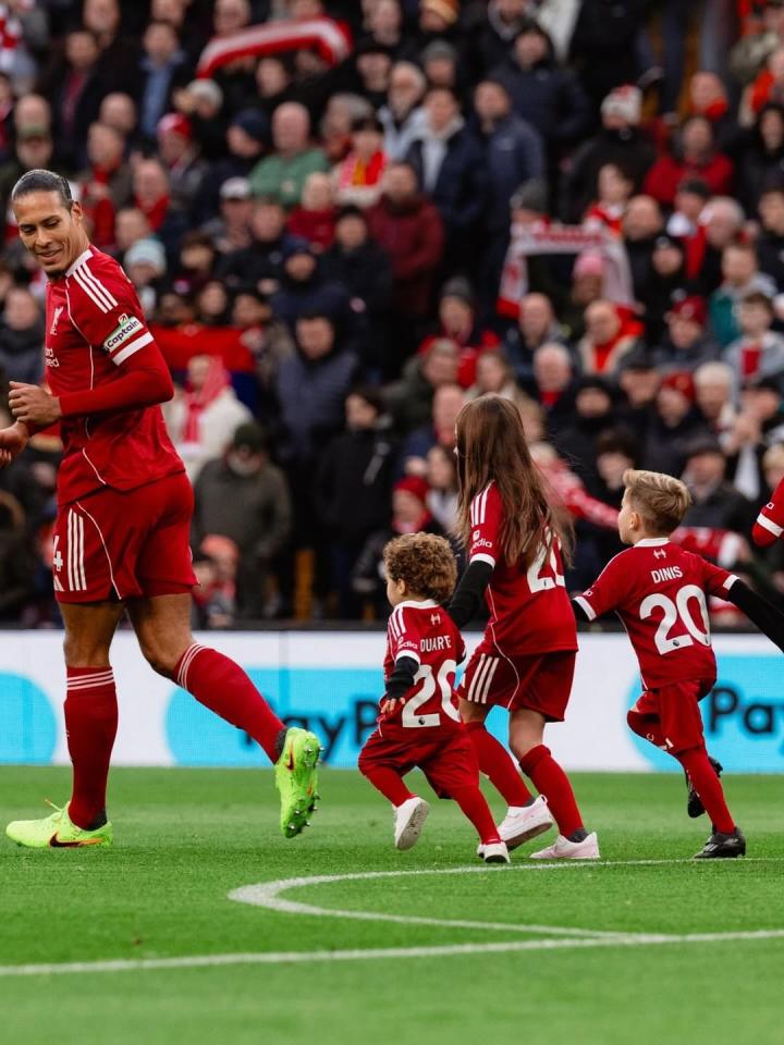 温情时刻,范戴克在开球前带着若塔的孩子们一起踢球