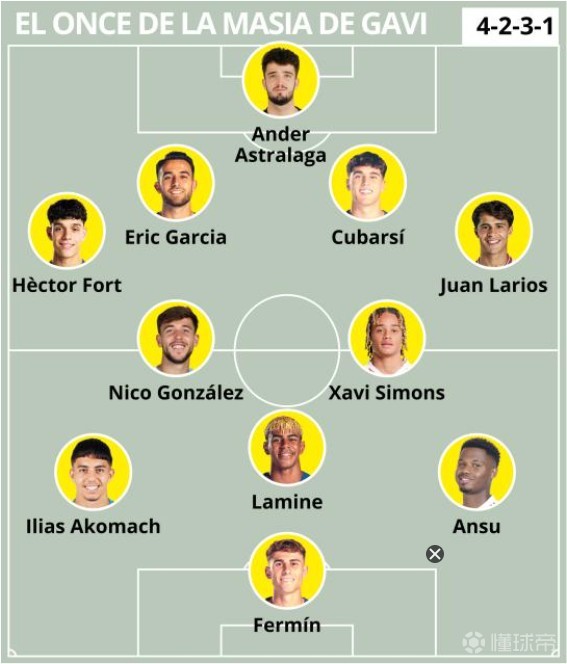 扫描下载懂球帝首页>动态> 加维选拉玛西亚队友首发阵容:亚马尔、西蒙斯、冈萨雷斯在列
