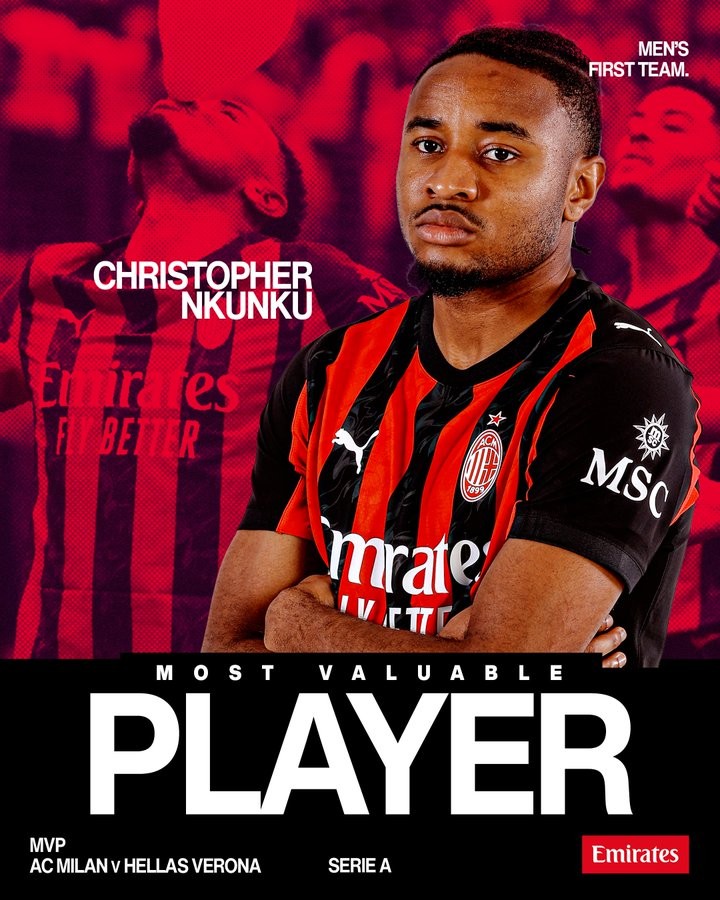 扫描下载懂球帝首页>动态> 完成梅开二度,恩昆库当选与维罗纳一役米兰队内最佳球员