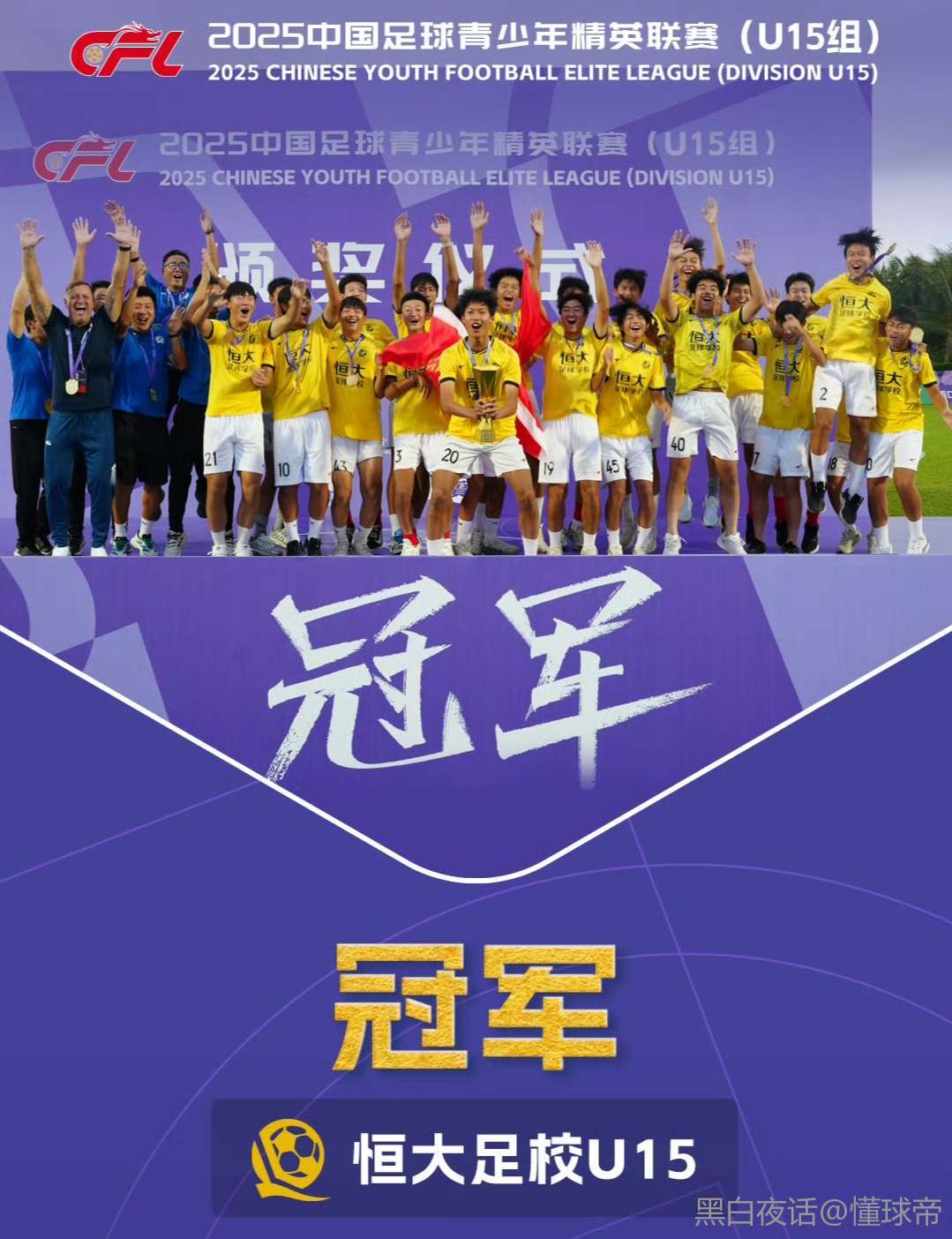 今年 恒大足校U13 U15 U17 均夺得全国冠军