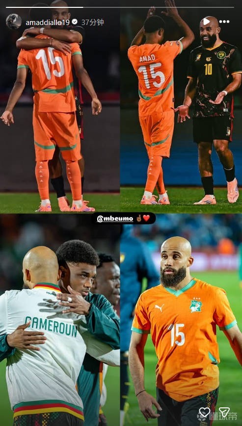 扫描下载懂球帝首页>动态> 非洲杯科特迪瓦1-1战平喀麦隆,阿马德赛后晒与姆伯莫照片
