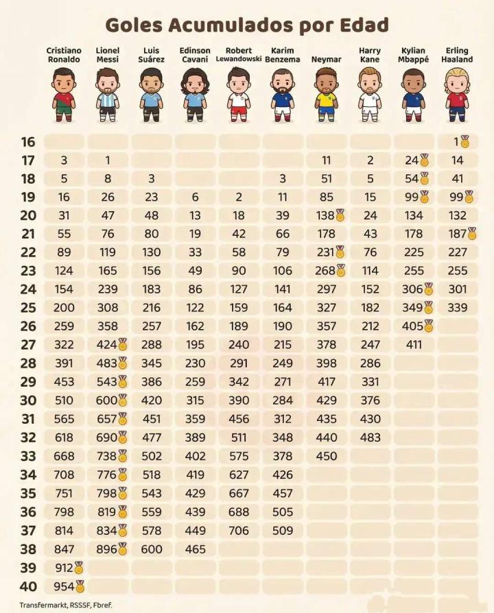 扫描下载懂球帝首页>动态> 懂球号> 十大神峰从16岁到40岁 同年龄阶段的进球数量1...