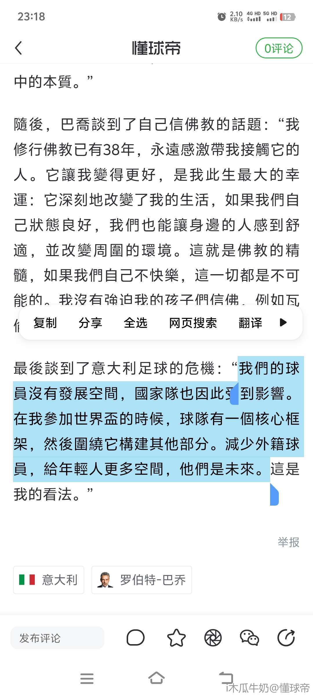 最后谈到了意大利足球的危机:“我们的球员没有发展空间,国家队也因此受到影响。在我参加世界杯的时候,球队有一个核心框架,然后围绕它构建其他部分。减少外籍球员,给年轻人更多空间,他们是未来。这是我的看法。”