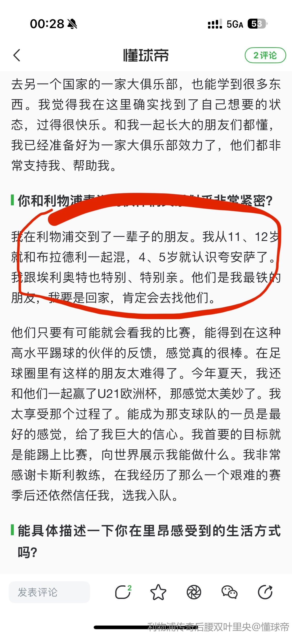 我在利物浦交到了一辈子的朋友。我从11、12岁就和布拉德利一起混,4、5岁就认识夸安萨了。我跟埃利奥特也特别、特别亲。他们是我最铁的朋友,我要是回家,肯定会去找他们。