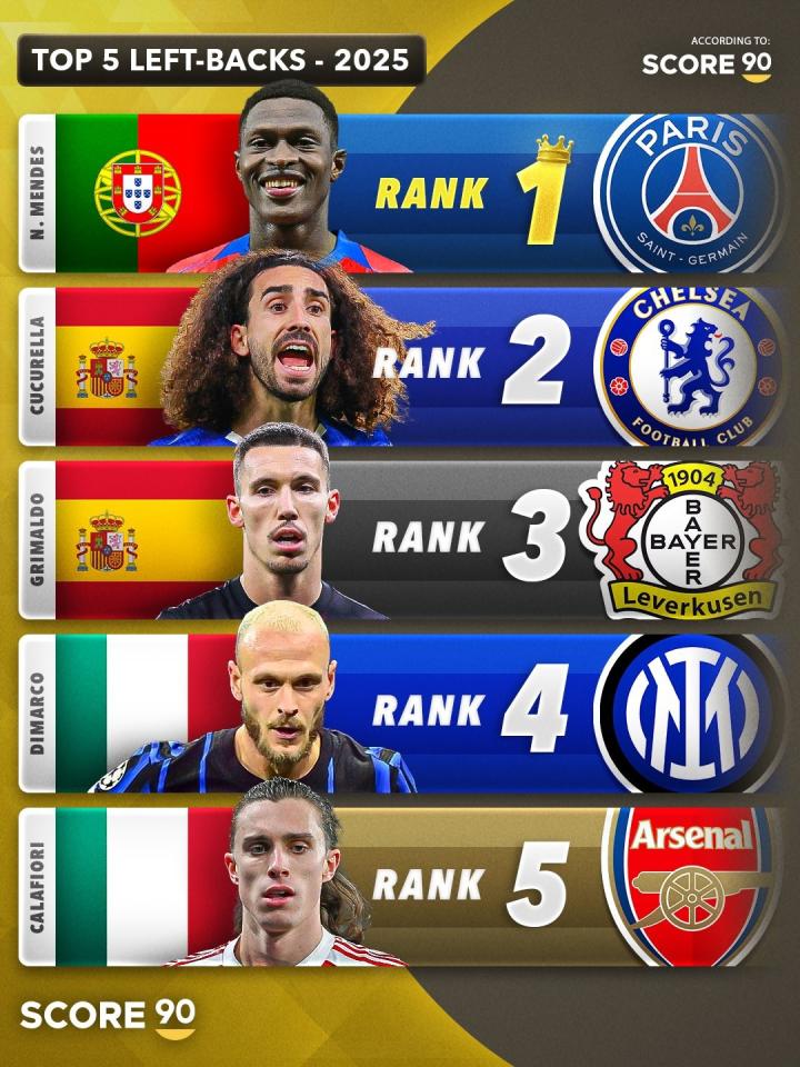 扫描下载懂球帝首页>动态> Score90评2025年五大后卫:加布里埃尔+巴黎双边卫居首