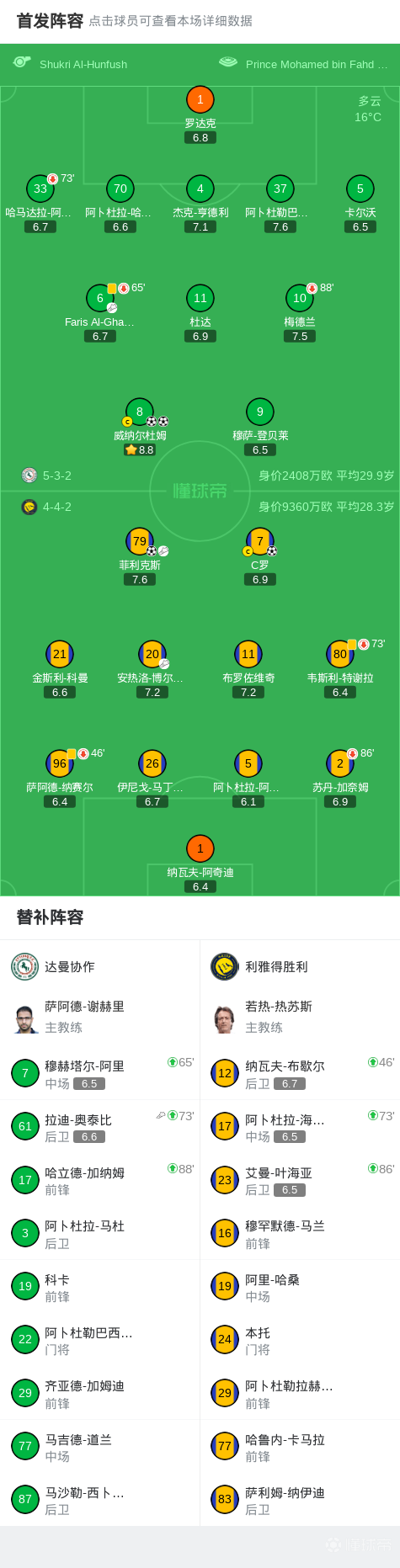 12-31 03:36达曼协作 vs 利雅得胜利 比赛动态