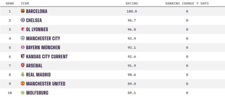 扫描下载懂球帝首页>动态> Opta女足俱乐部实力排名:巴萨女足满分居首,切尔西女足次席