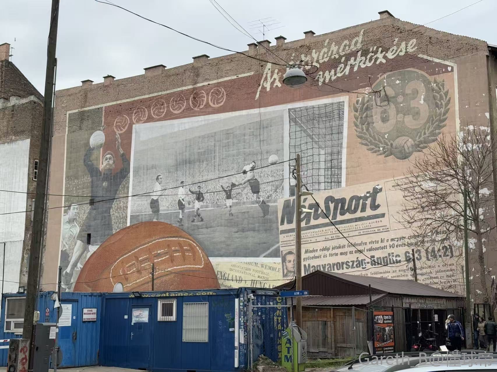 布达佩斯的街头有踢英格兰6:3巨型涂鸦