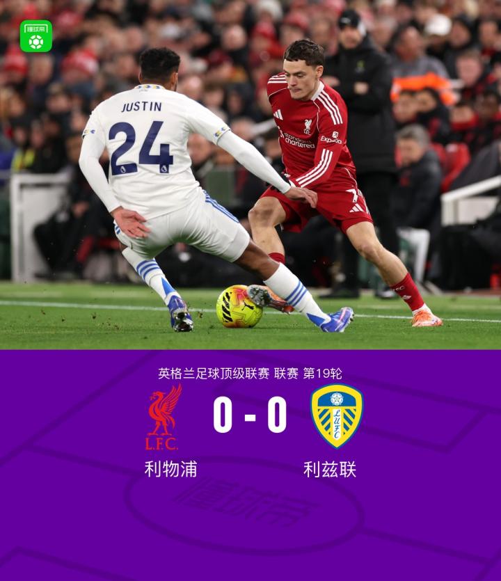 扫描下载懂球帝首页>动态> 剑南春|利物浦0-0利兹联,勒温进球被吹,维尔茨失良机