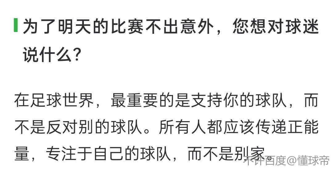 在足球世界,最重要的是支持你的球队,而不是反对别的球队。所有人都应该传递正能量,专注于自己的球队,而不是别家。
