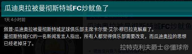 曼城即将在英超第20轮主场对阵切尔西,曼城主帅瓜迪奥拉出席了赛前新闻发布会。