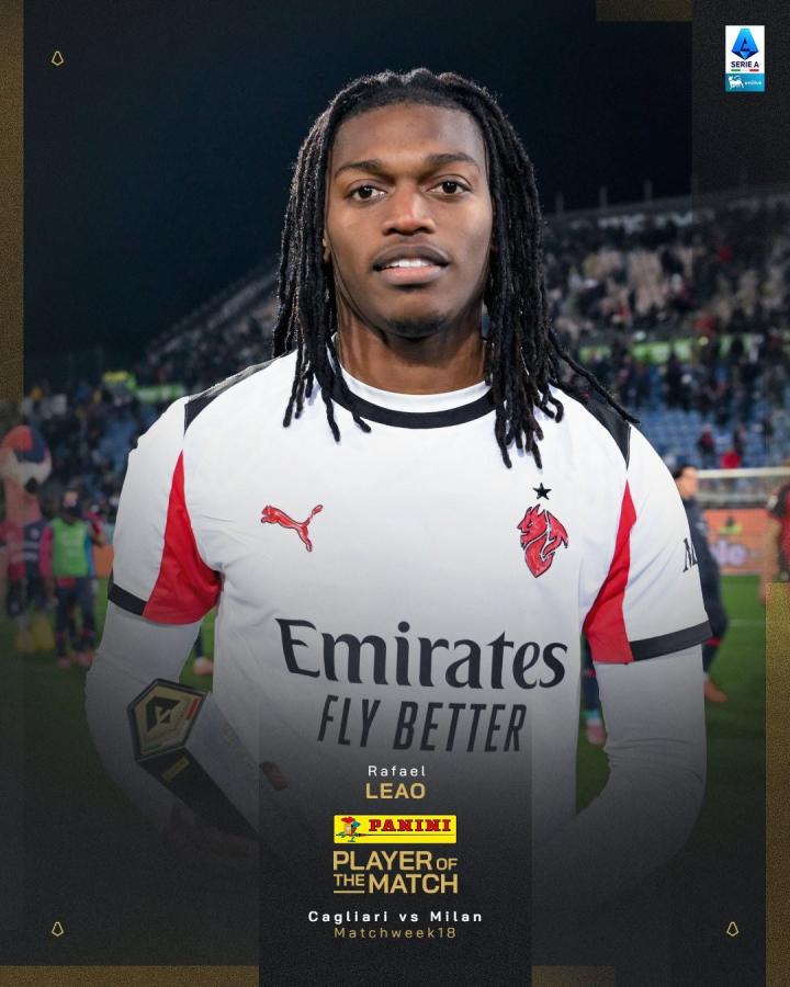 扫描下载懂球帝首页>动态> 攻入全场唯一进球,莱奥当选卡利亚里vs米兰全场最佳