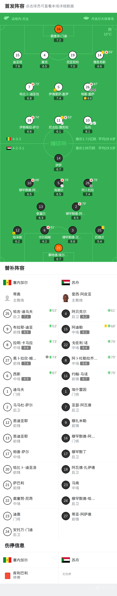 14.在非洲杯小组赛中,苏丹只有5脚射正,同样是晋级淘汰赛的球队中最少的。他们唯一一粒进球是对手的乌龙球。