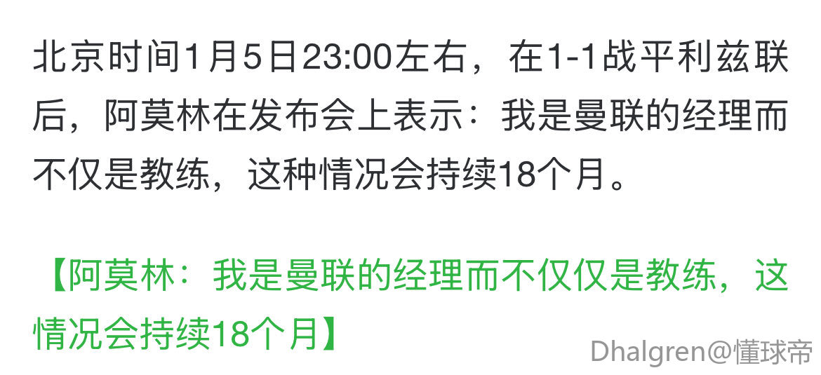 阿莫林本人非常清楚,他说的那些话,其实并不是要什么权力,因为他知道曼联没钱买人,他就是在辞职,这是他最后的体面。