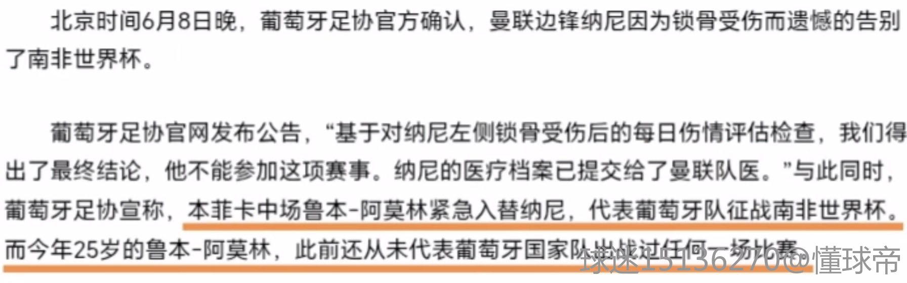 10年南非世界杯,纳尼自己把自己弄伤了,葡萄牙足协临时补招阿莫林进队