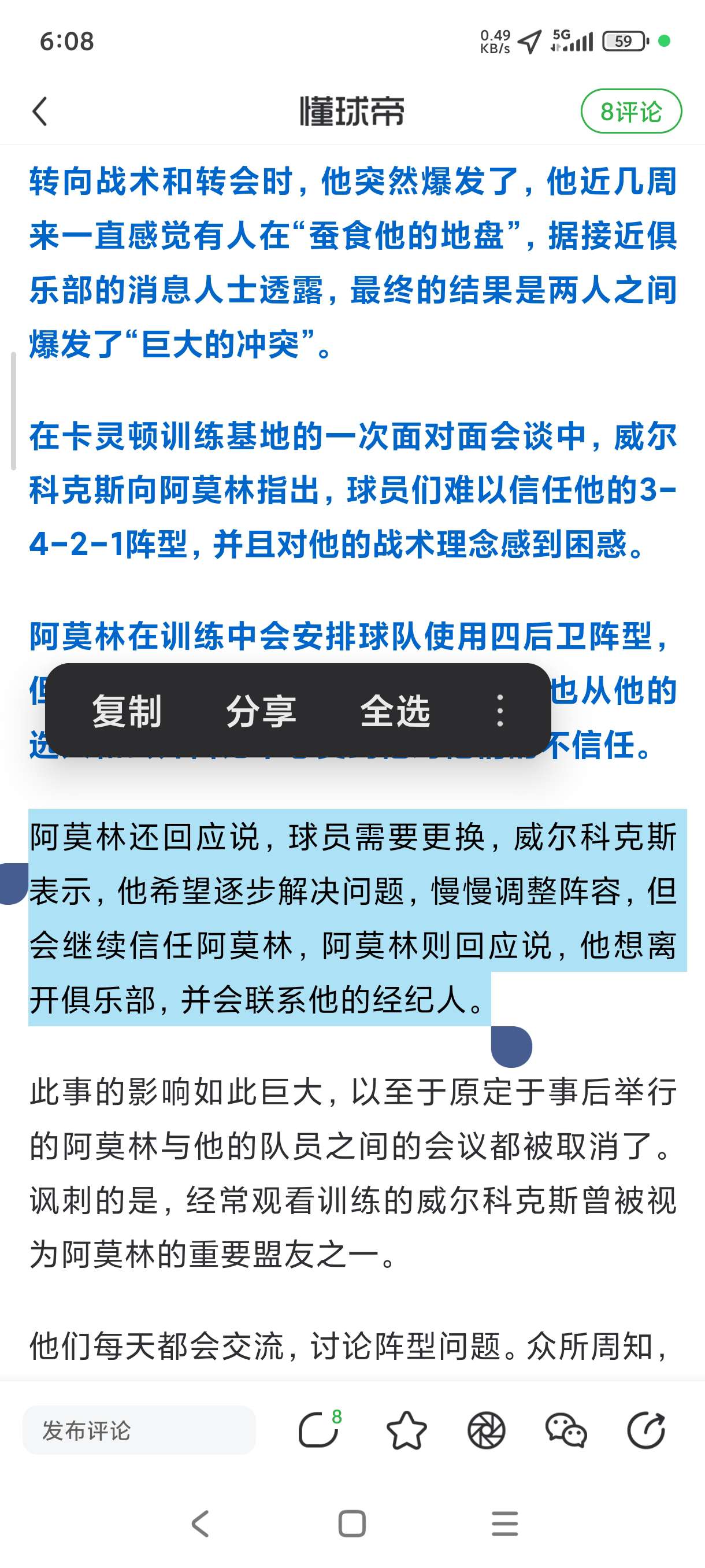 虽然阿莫林对球迷和普通员工表现得非常友好和慷慨,但一些球员希望他能加强沟通。