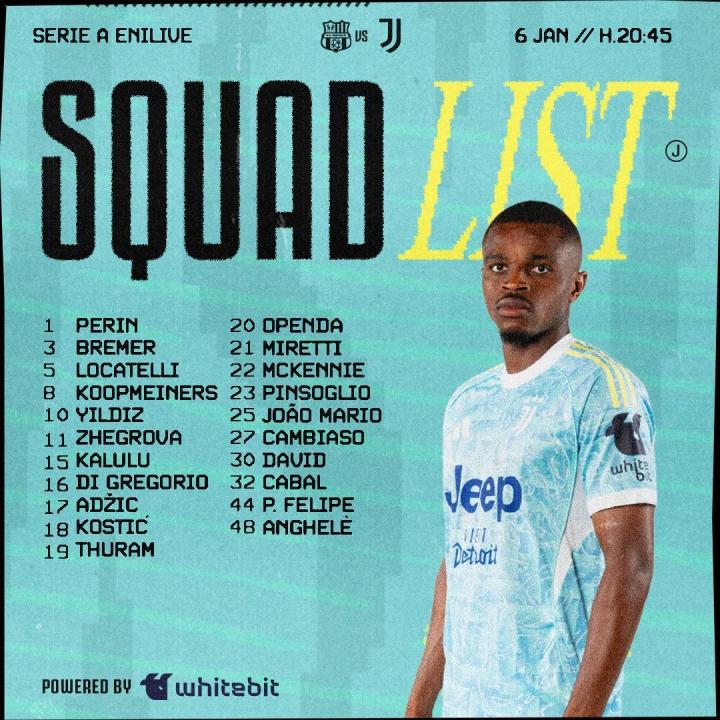 扫描下载懂球帝首页>动态> 尤文客战萨索洛名单:伊尔迪兹、凯夫伦在列,小孔塞桑缺阵