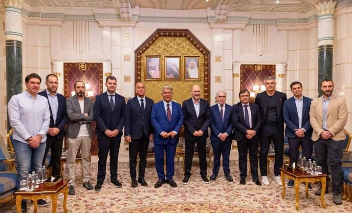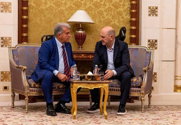 扫描下载懂球帝首页>动态> 与西超杯参赛俱乐部会议第一站,西足协主席与拉波尔塔会面