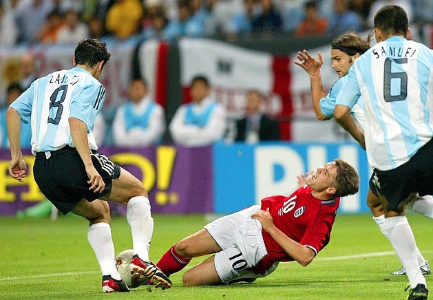1998年世界杯,萨内蒂在圣埃蒂安对阵英格兰的比赛中进球。那场比赛2-2战平,阿根廷最终通过点球大战取胜。18岁的欧文在比赛中打入精彩进球,完成国家队层面的亮相,而贝克汉姆则在下半场初段被罚下。